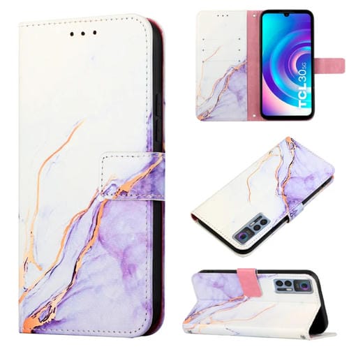 Estuche de Cuero para TCL 30 5G y 30+ 5G Pt003 con Tapa y Patrón Mármol (Blanco Púrpura)