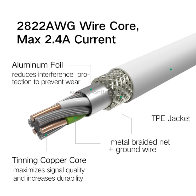 El Cable de datos con Corriente de salida de 2.4A y Soporte para Carga rápida QC 3.0 es un accesorio diseñado para usuarios que requieren una solución eficiente y versátil para la Carga y transferencia de datos en dispositivos Móviles. Este Cable cuenta con dos interfaces, Micro USB y USB-C Tipo C, que permiten la compatibilidad con una amplia variedad de Teléfonos y dispositivos electrónicos. Su longitud de 30 cm facilita el manejo y reduce el desorden, mientras que su construcción con núcleo de cobre estañado y Cubierta de TPE asegura durabilidad y calidad en la transmisión de Señal. Es ideal para quienes necesitan una Conexión rápida y segura para Cargar y sincronizar dispositivos con diferentes Puertos.