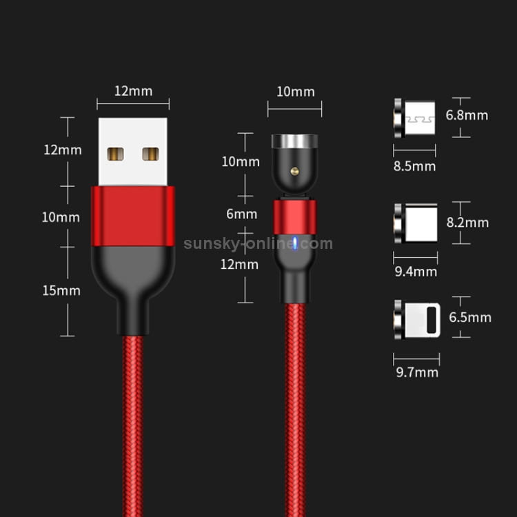- 1x Cable de Carga magnético USB A a Micro USB 2M 2A Nylon trenzado girar (Rojo)