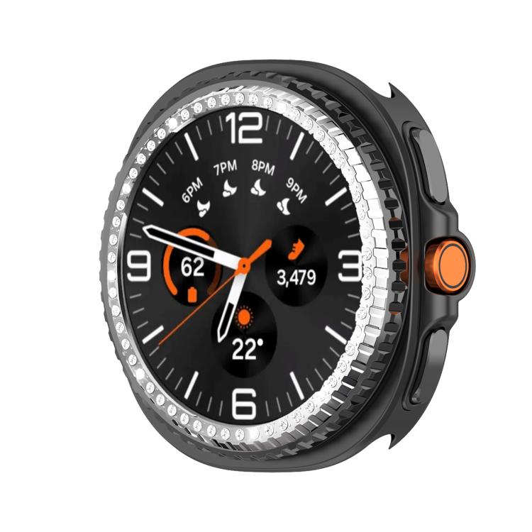 Anillo protector de metal con diamantes de una sola fila para Samsung Galaxy Watch8 Classic de 46 mm (plata galvanizada)