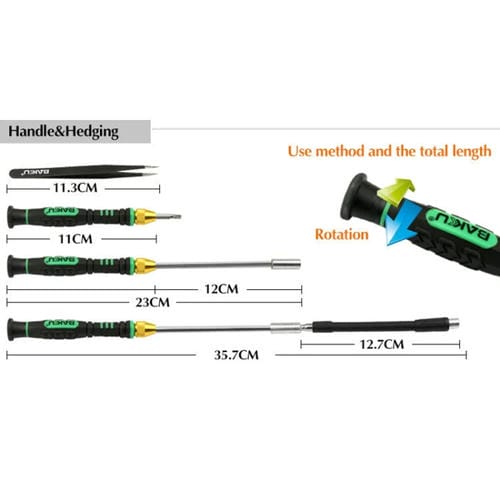 El Baku BK-3051 Set de Destornillador Manual 51 en 1 (2023) es un Conjunto profesional diseñado para facilitar reparaciones precisas en dispositivos electrónicos, especialmente Teléfonos Móviles. Este set incluye una amplia variedad de puntas de destornillador de alta precisión, fabricadas en acero de aleación de vanadio de cromo, que garantiza robustez y durabilidad en cada uso. Su eje ajustable y la extensión de eje Flexible permiten acceder a áreas difíciles, adaptándose a diferentes longitudes y ángulos durante la reparación. Además, cuenta con propiedades magnéticas que facilitan la manipulación de Piezas pequeñas, optimizando la eficiencia en tareas Técnicas. Este kit es adecuado para usuarios que realizan reparaciones por cuenta propia y profesionales que requieren herramientas confiables para trabajos delicados.