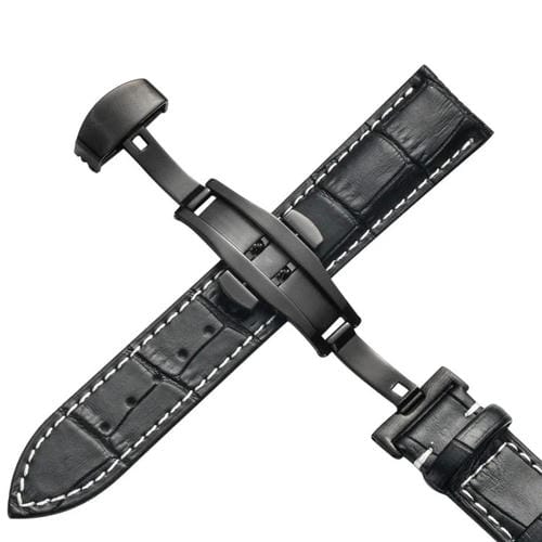 Bracelet de montre classique en cuir de vachette à boucle papillon de 18 mm (lignes noires et blanches)
