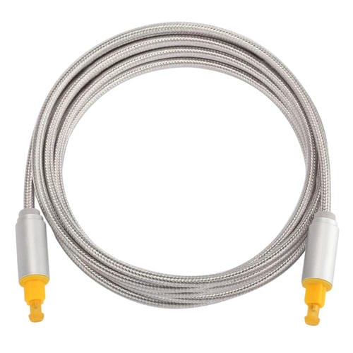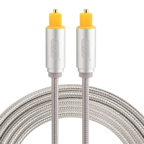 Cable de Audio Óptico Digital EMK 2M OD4.0mm Chapado en Oro con Cabeza Metálica Tejida Toslink Macho a Macho (Plateado)