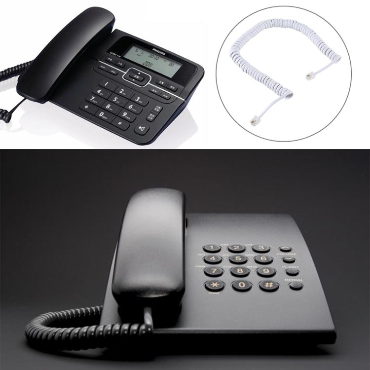 Cable de extensión telefónica RJ11 de 4 núcleos, macho a macho, con resorte, longitud de 5 m (blanco)