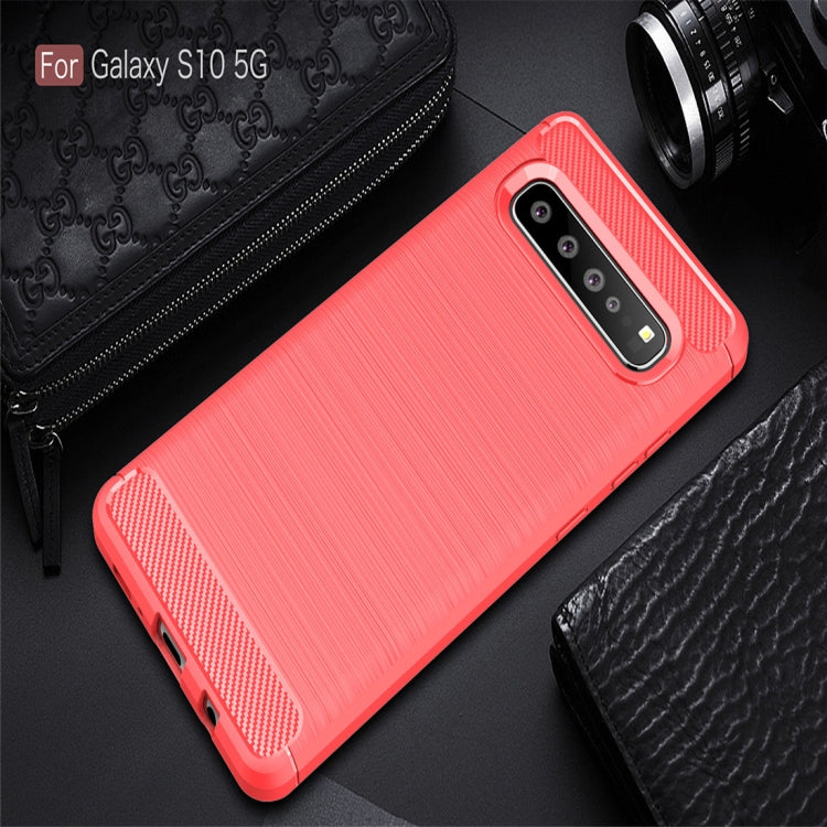 Carcasa TPU Fibra de Carbono Galaxy S10 5G Función Protección (Rojo)