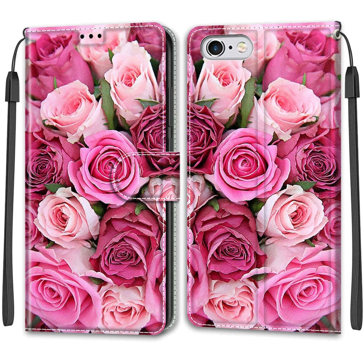 Funda de Cuero PU con Cierre Magnético y Soporte para iPhone 6S / 6 (Green Leaf Pink Rose)