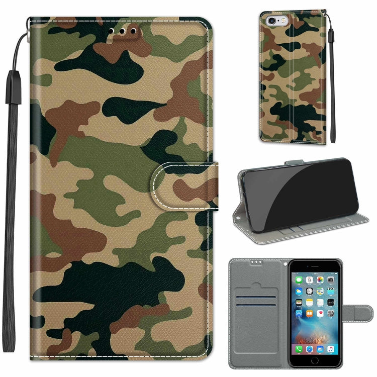 Funda Cuero Flip PU iPhone 6S 6 Cierre Magnético Soporte Ranuras Tarjeta (Camuflaje Amarillo Verde)