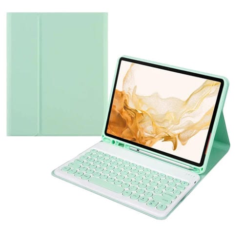 Teclado Bluetooth Universal Color de Caramelo Claves Redondas con Caja de Cuero (Verde)