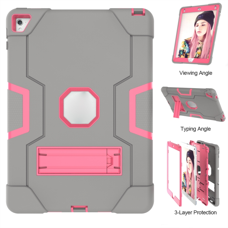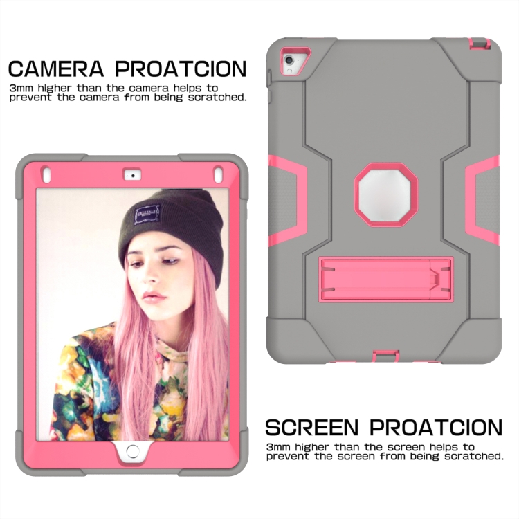 Funda Tablet Contraste Color Robot Silicone + PC para iPad 6 / iPad Pro 9.7 (2016) (Gris Rosa Rojo)