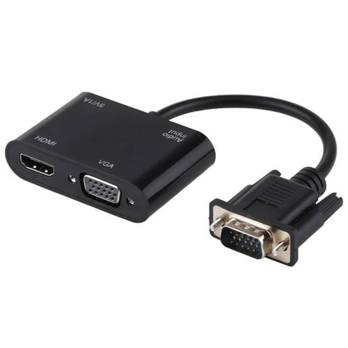- 1x Convertidor Adaptador 2 en 1 VGA a HDMI y VGA de 15 Pines HDTV con Audio