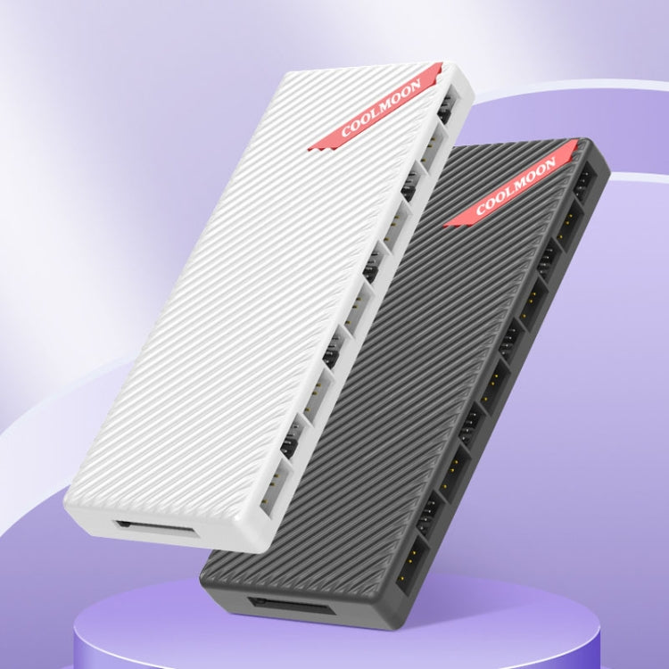 Hub controlador de ventilador Coolmoon AM10 ARGB + PWM dual 10 puertos con control de temperatura para caja ventilador 5V 3Pin (Blanco)