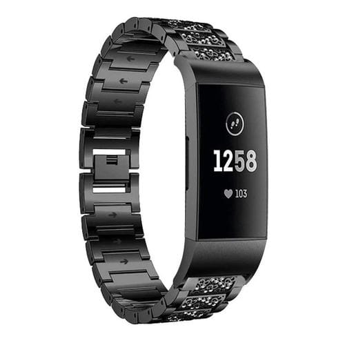 Correa de acero inoxidable con diamantes de imitación para Fitbit Charge 4/3 de 18 mm (negro)
