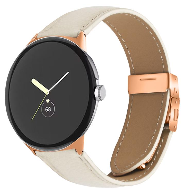 Correa de cuero con hebilla de caparazón de tortuga en oro rosa con textura de lichi de 41 mm para Google Pixel Watch 4 / 3 / 2 / 1 (blanco crema).