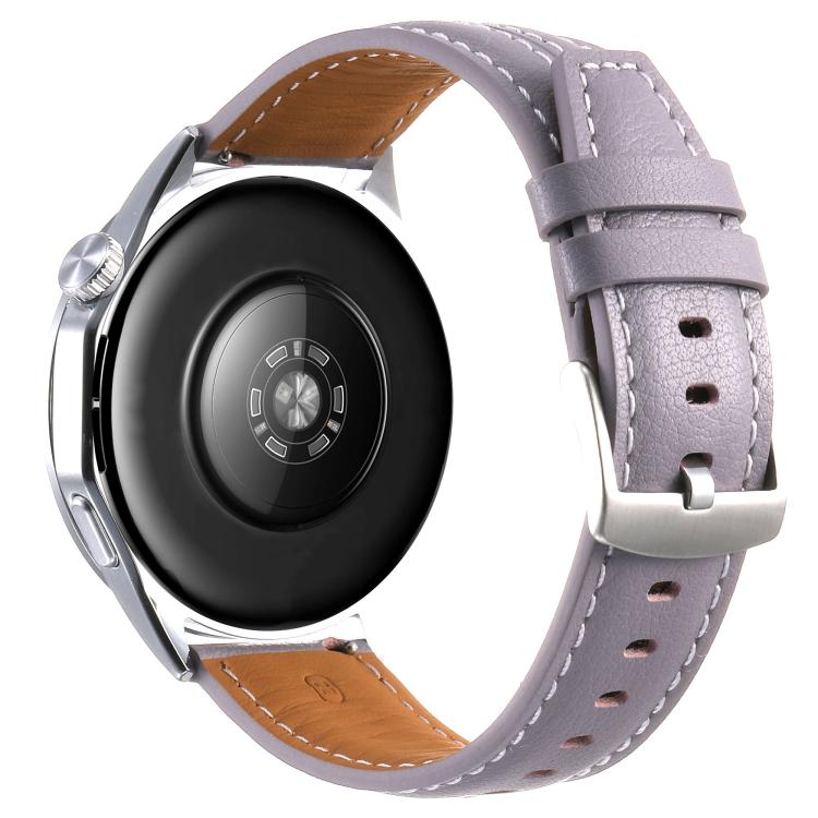 Correa de cuero con hebilla plateada para Huawei Watch GT 6 de 46 mm (morada)
