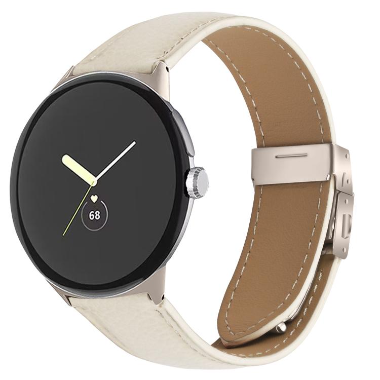 Correa de cuero con hebilla Starlight Turtle Back y textura de lichi de 41 mm para Google Pixel Watch 4 / 3 / 2 / 1 (blanco crema).