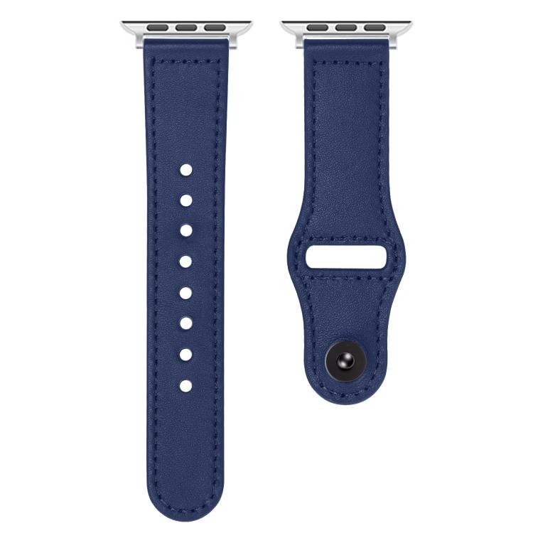 Correa de cuero genuino con hebilla inversa para Apple Watch de 46 mm, 49 mm, 45 mm y 44 mm (azul medianoche)