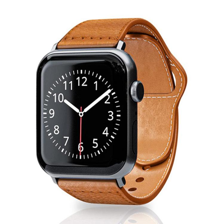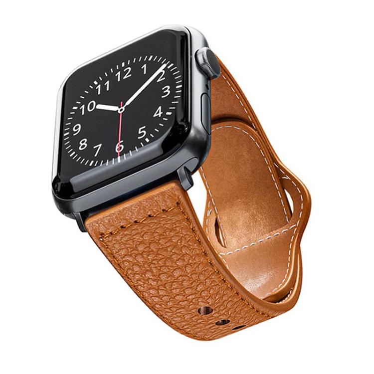 Correa de cuero genuino Litchi con hebilla inversa para Apple Watch de 46 mm, 49 mm, 45 mm y 44 mm (marrón)