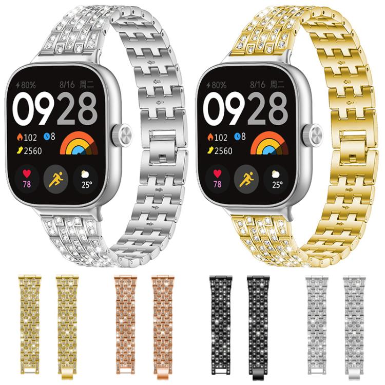 Correa de metal con cinco cuentas de diamantes xDfind para Xiaomi Smart Band 9 Pro/8 Pro/Redmi Watch 5/4 (oro rosa)