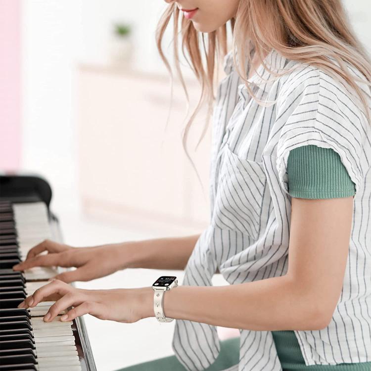 Correa de metal con diseño de pétalos de nieve para Apple Watch de 42 mm, 41 mm, 40 mm y 38 mm (luz de estrella)