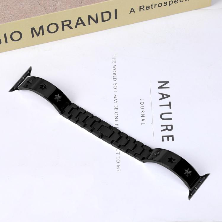 Correa de metal con diseño de pétalos de nieve para Apple Watch de 42 mm, 41 mm, 40 mm y 38 mm (negra)