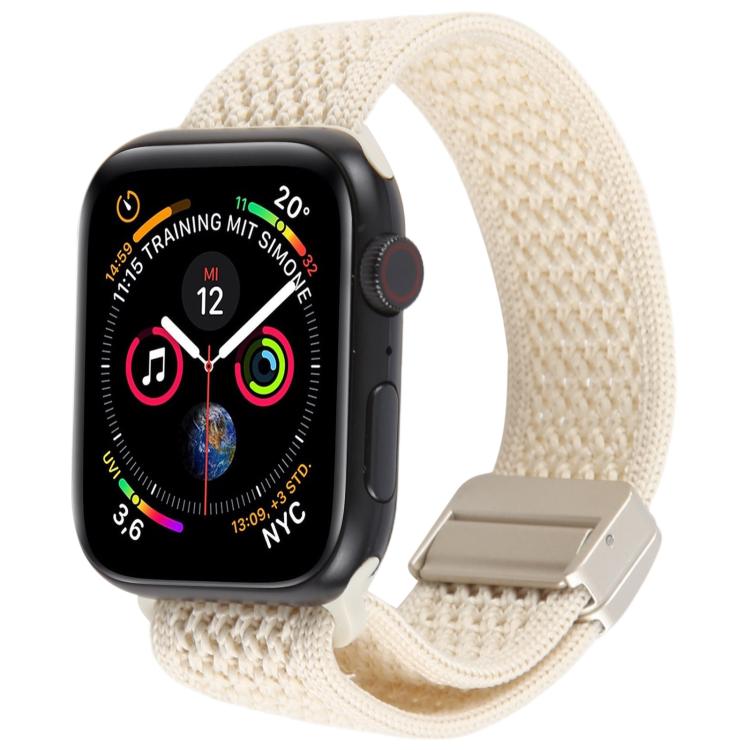Correa de nailon transpirable con hebilla magnética para Apple Watch de 46 mm, 49 mm, 45 mm y 44 mm (Starlight)