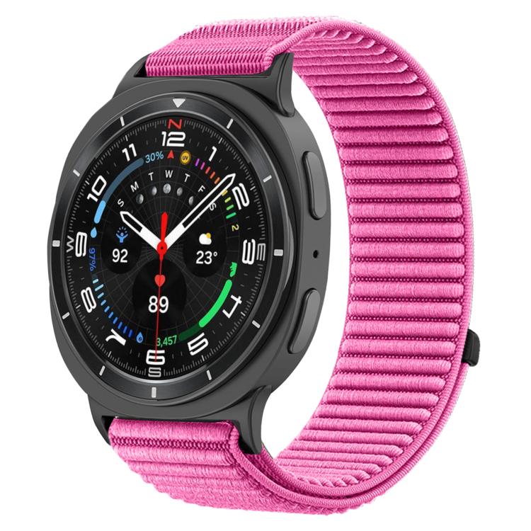 Correa de reloj clásica de nailon tejido con cierre de velcro y interfaz metálica para Samsung Galaxy Watch8/Watch8 (rosa peonía)
