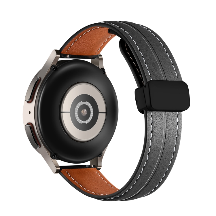 Correa de Reloj de Cuero Genuino Acanalado 22mm con Hebilla Plegable Negra (Negro)
