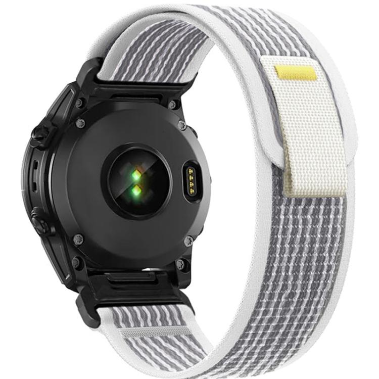 Correa de reloj de liberación rápida con cierre de velcro de nailon de 22 mm para Garmin (gris y blanco)