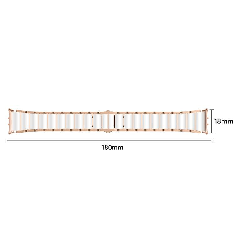 Correa de reloj de metal blanco y cerámica con hebilla de mariposa para Samsung Galaxy Fit 3 (oro rosa)