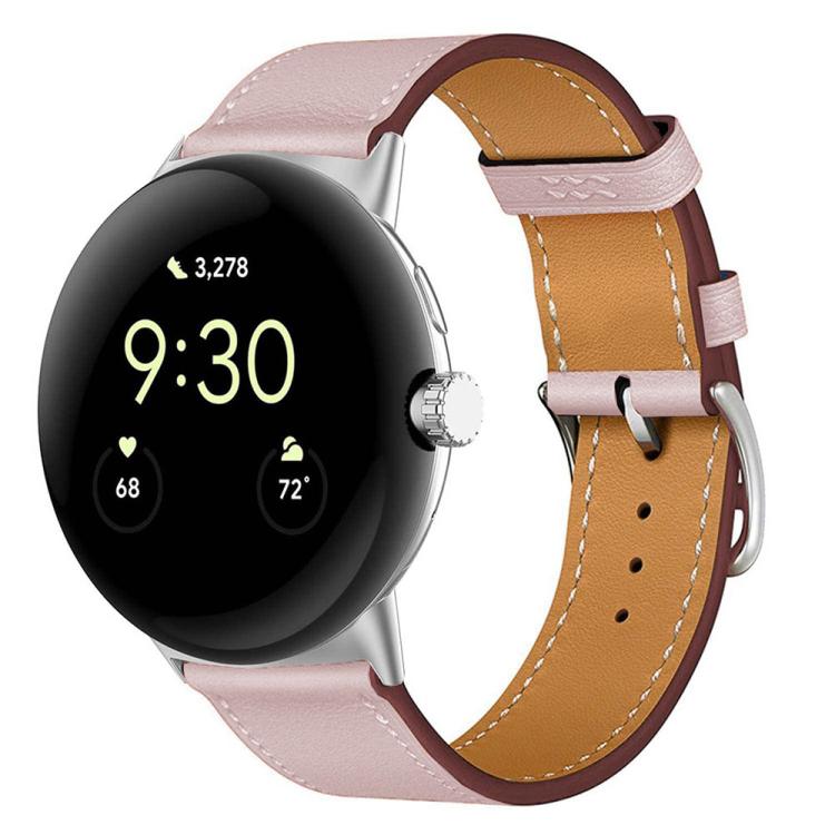 Correa de reloj de piel auténtica de 45 mm para Google Pixel Watch 4/3 (rosa claro)