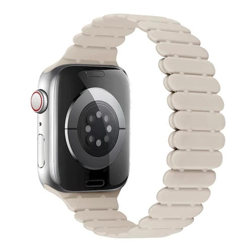 Bracelet de montre en silicone magnétique en bambou pour Apple Watch SE 44 mm (Starlight)