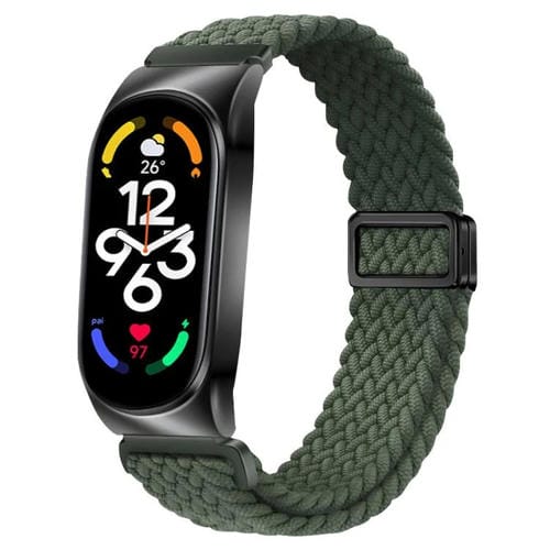 Correa de reloj elástica de nailon trenzado con hebilla magnética y marco de metal para Xiaomi Mi Band 7 (verde oliva)