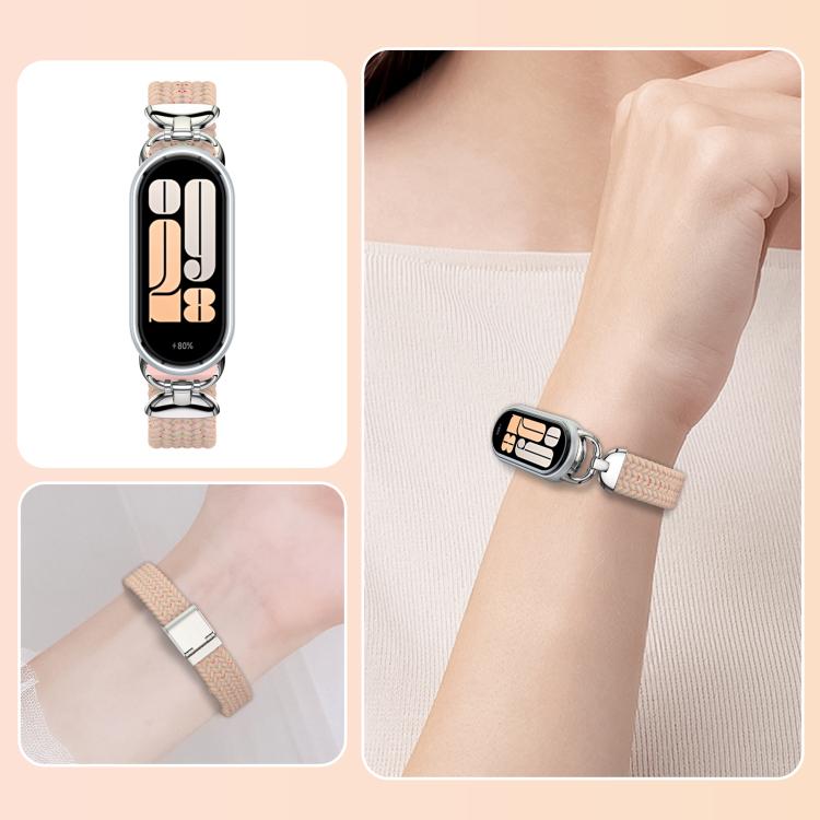Correa de reloj trenzada de nailon de dos secciones con cabezal metálico para Xiaomi Smart Band 10/9/8 (rosa)