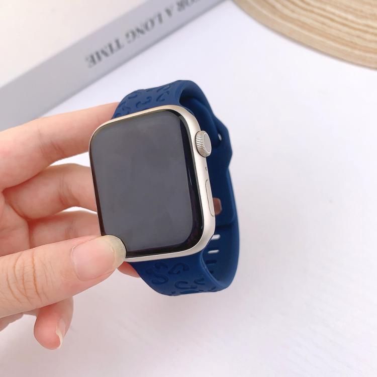 Correa de silicona con hebilla cóncava de leopardo para Apple Watch de 42 mm, 41 mm, 40 mm y 38 mm (azul medianoche)