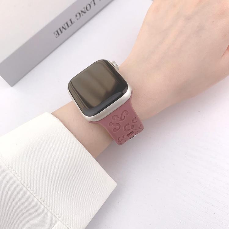 Correa de silicona con hebilla cóncava de leopardo para Apple Watch de 42 mm, 41 mm, 40 mm y 38 mm (morado ahumado)