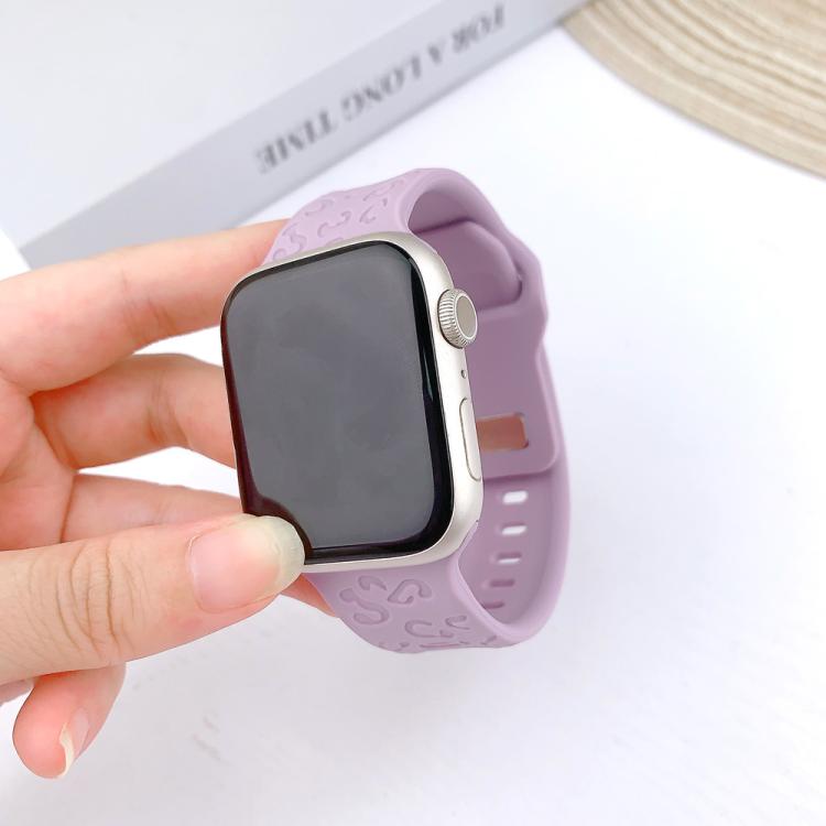 Correa de silicona con hebilla cóncava de leopardo para Apple Watch de 42 mm, 41 mm, 40 mm y 38 mm (morado claro)