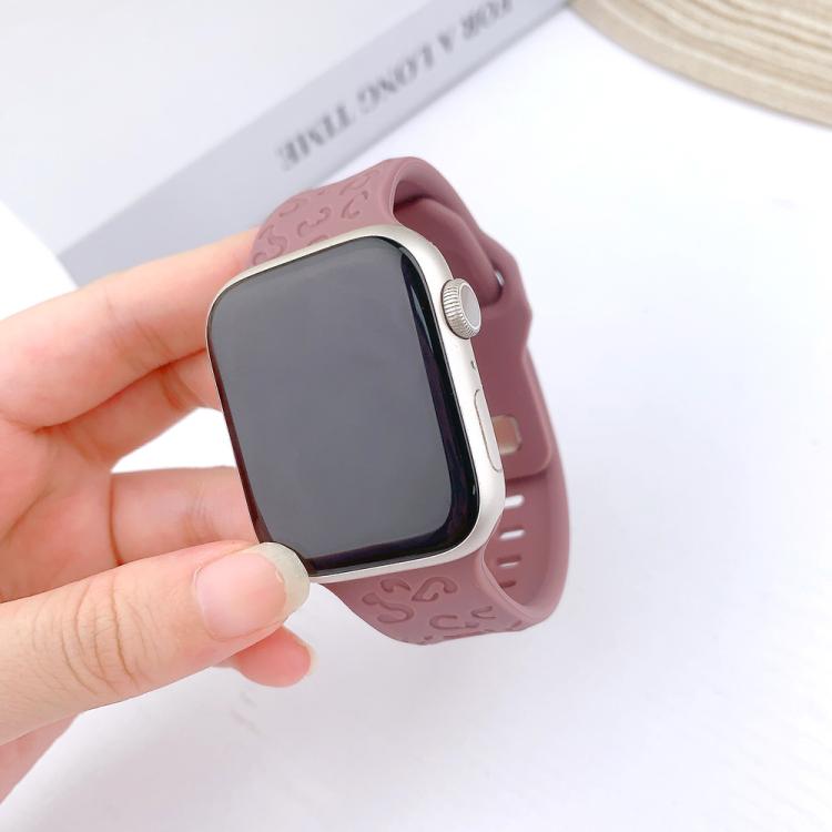 Correa de silicona con hebilla cóncava de leopardo para Apple Watch de 46 mm, 49 mm, 45 mm y 44 mm (morado ahumado)