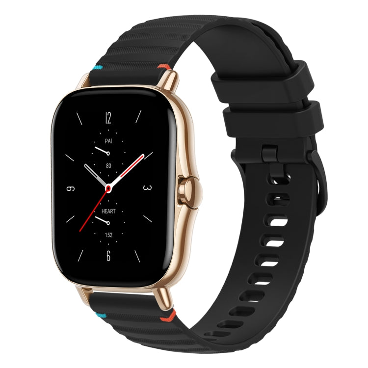 Correa de Silicona para Reloj Amazfit GTS 2 20mm con Puntadas Onduladas y Puntos (Negra)