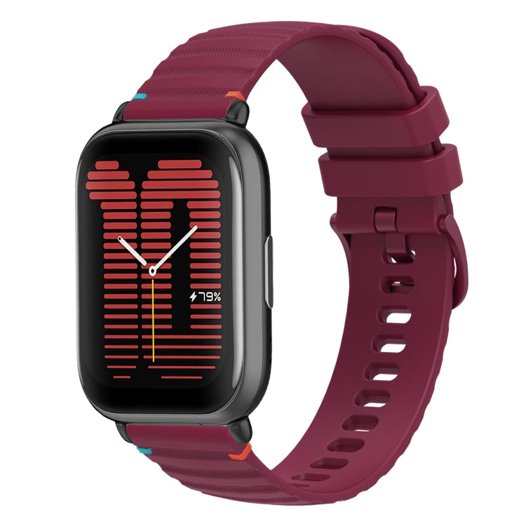 Correa de Silicona para Reloj Amazfit Active 20mm con Puntadas Onduladas y Puntos (Rojo Vino)