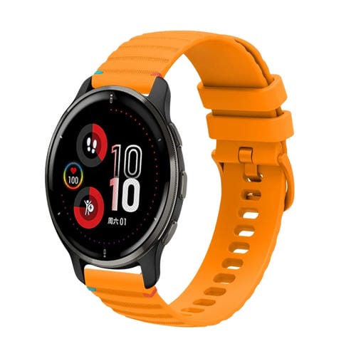 Correa de Silicona Garmin Venu 2 Plus 20mm Puntadas Onduladas y Puntos (Amarillo Ámbar)