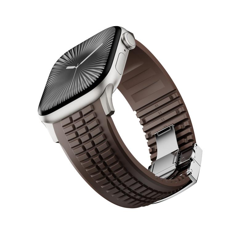 Correa de silicona con textura moleteada y hebilla plegable para Apple Watch de 46 mm, 49 mm, 45 mm y 44 mm (curry de titanio)