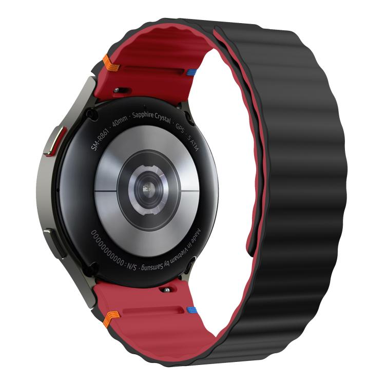 Correa de silicona magnética con costuras onduladas para Samsung Galaxy Watch 7/6/5/4 (negro y rojo)