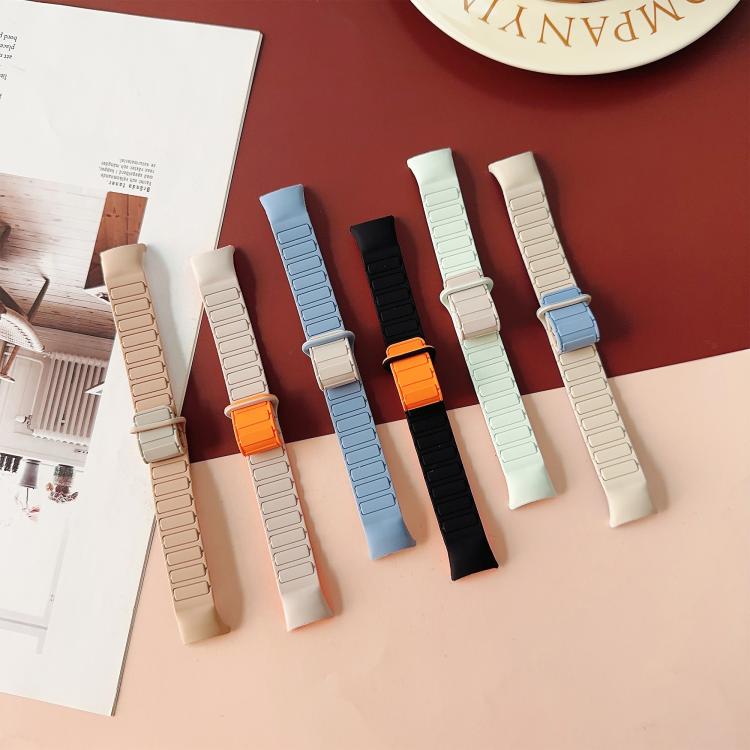 Correa de silicona magnética de tres cuentas para Xiaomi Smart Band 10/9/8 (blanco té con leche)