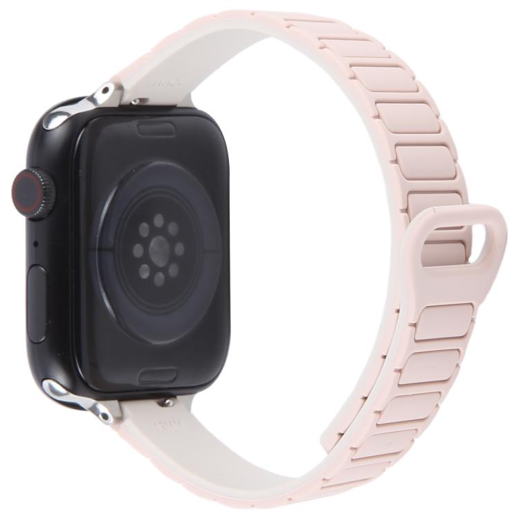 Correa de silicona magnética delgada en forma de I para Apple Watch de 42 mm, 41 mm, 40 mm y 38 mm (plateada y rosa brillante)