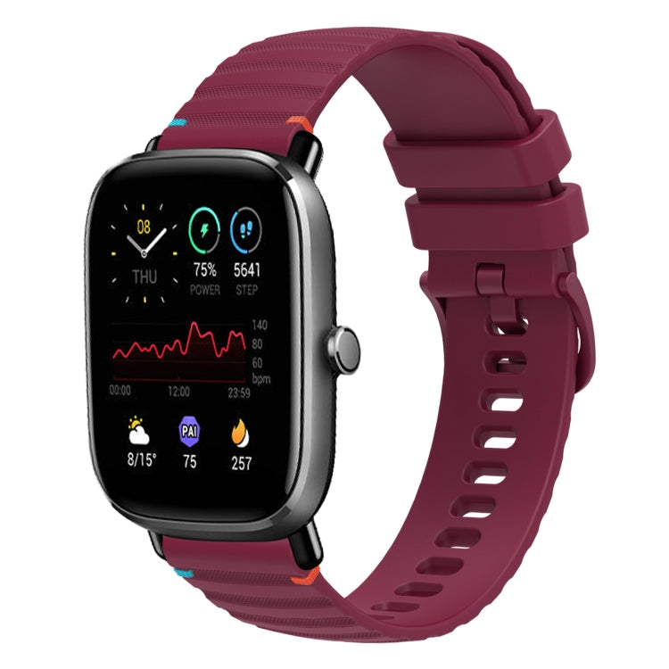 Correa de Silicona para Reloj Amazfit Gts 2 Mini con Puntadas Onduladas de 20mm (Rojo Vino)
