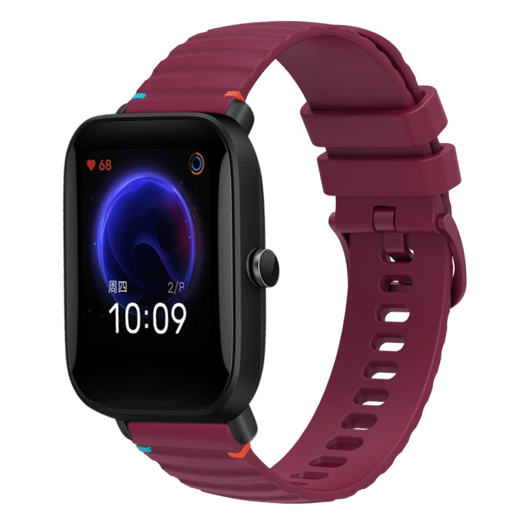 Correa de Silicona Amazfit Pop 20mm con Puntadas Onduladas y Puntos (Rojo Vino)