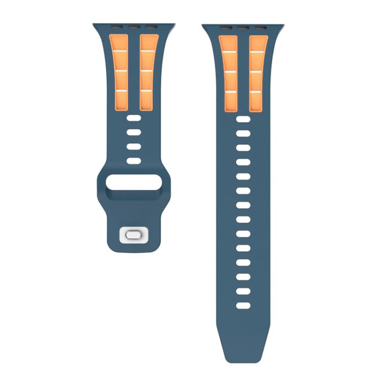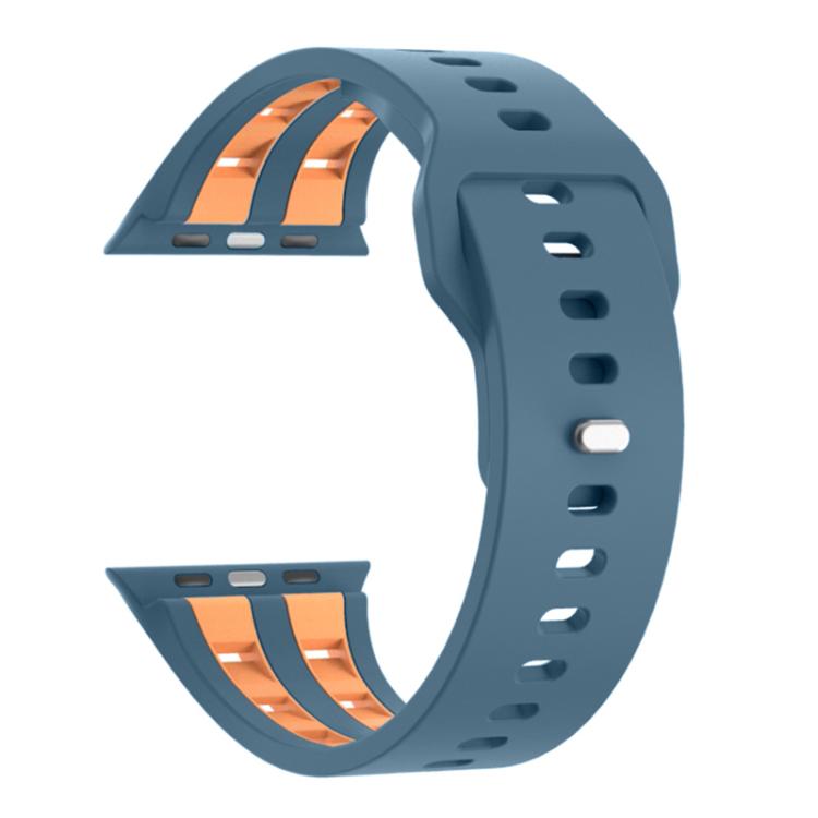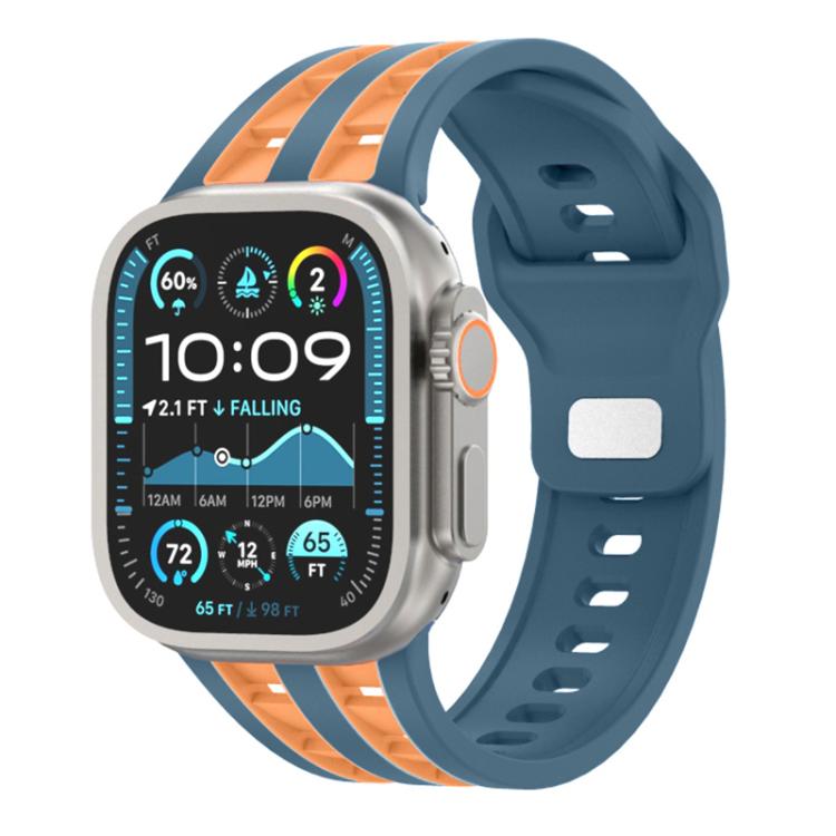 Correa de silicona transpirable de doble fila para Apple Watch de 46 mm, 49 mm, 45 mm y 44 mm (azul y naranja)