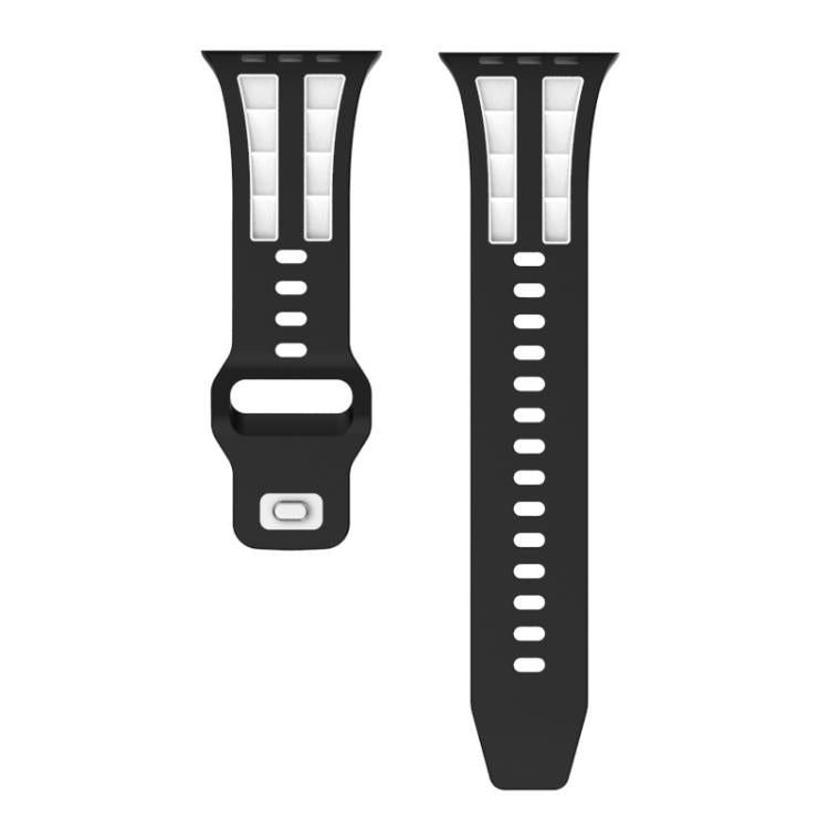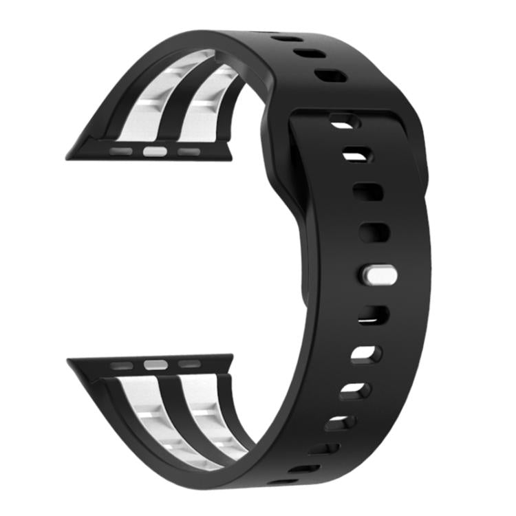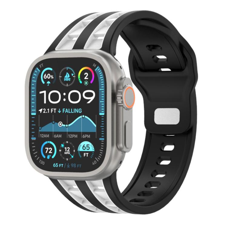 Correa de silicona transpirable de doble fila para Apple Watch de 46 mm, 49 mm, 45 mm y 44 mm (negro y blanco)