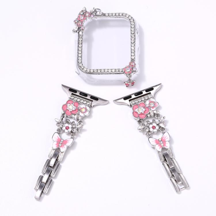 Correa hueca con un solo diamante y diseño de flor con borlas para Apple Watch Series 9/8/7 de 44 mm (plateada)