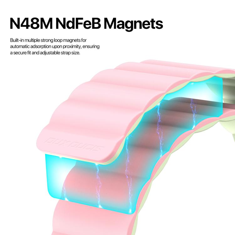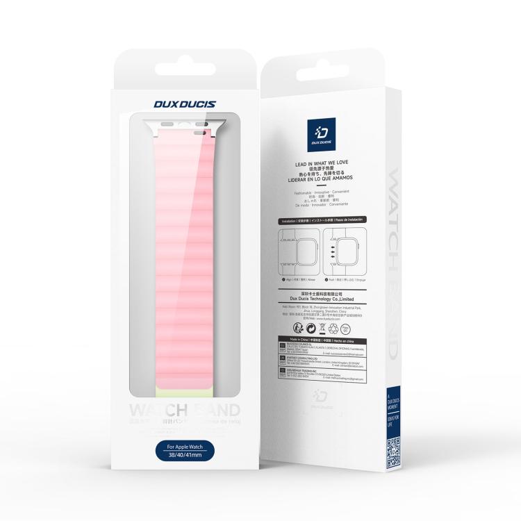Correa magnética de silicona de doble cara con inserción ciega para Apple Watch de 46 mm, 49 mm, 45 mm y 44 mm, serie DUX DUCIS SD (rosa claro y verde claro).